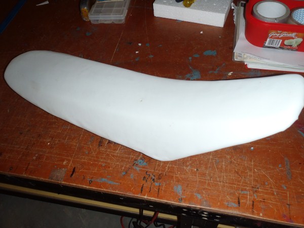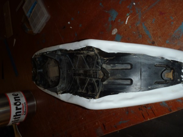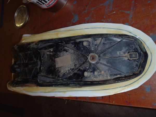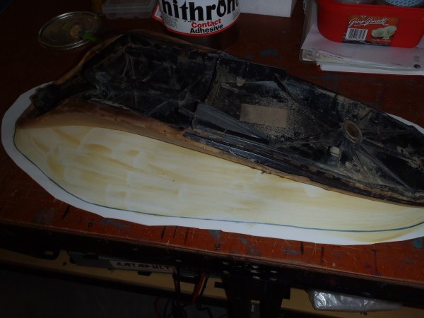 Turn the seat over and line it up in the middle of the EVA foam sheet. With one hand push the foam from front to back on the seatfoam.