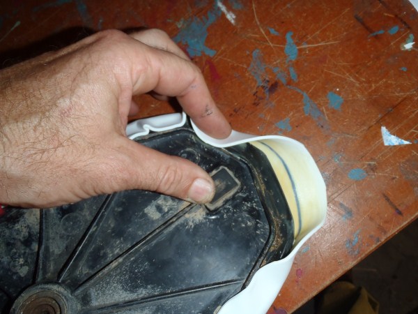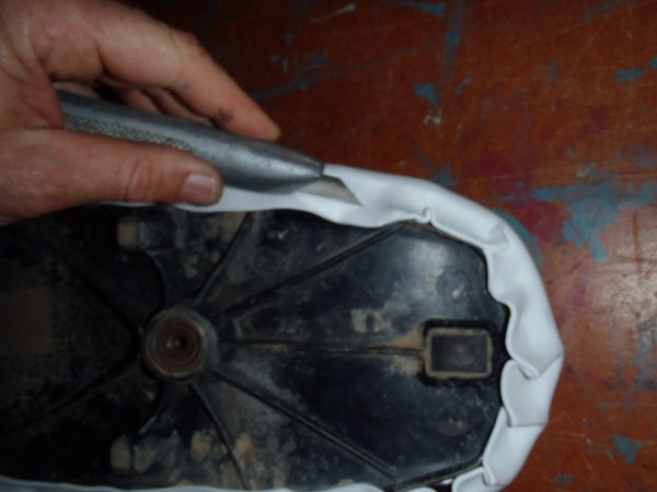 Fold the overhang onto the plastic base so its completly covered around all sides.
