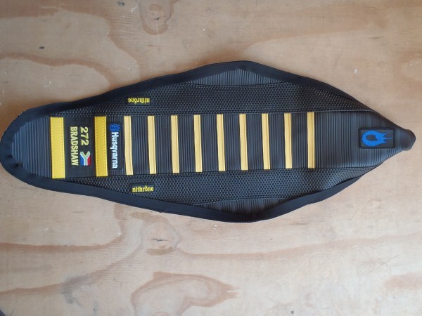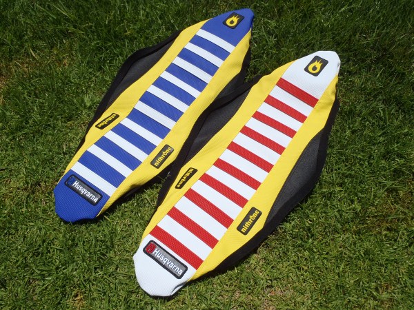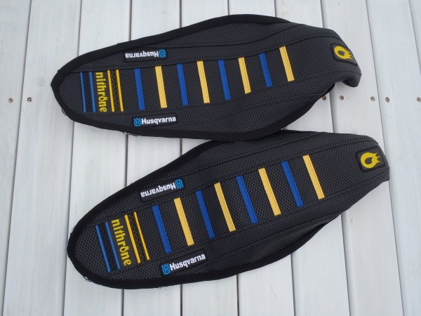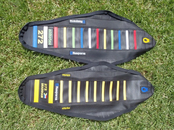 All seat orders are made with the new imported gripper material that is shown in the newer pictures.