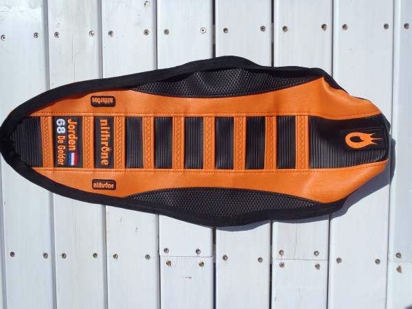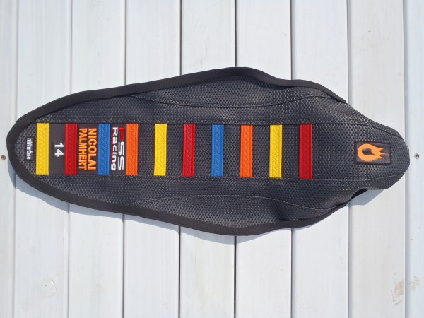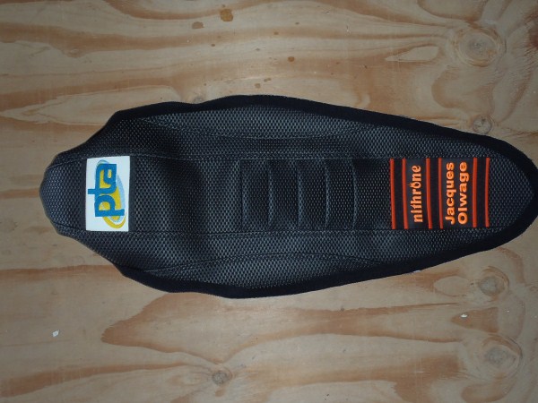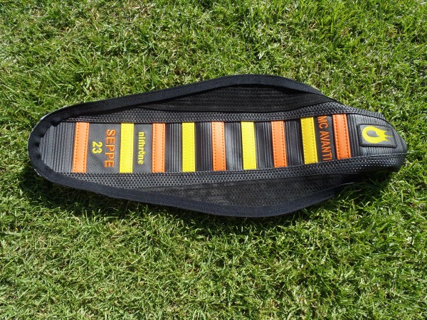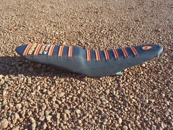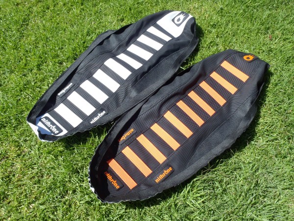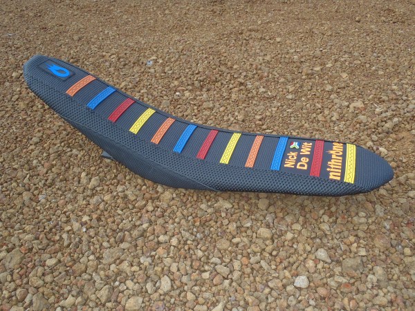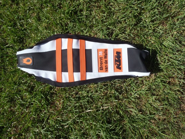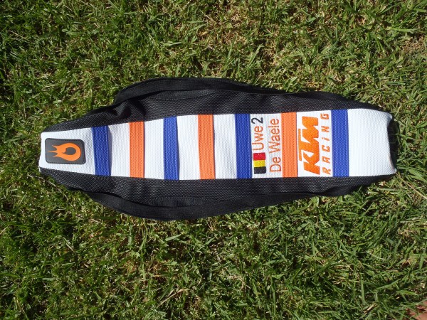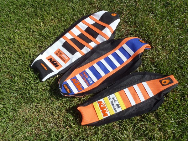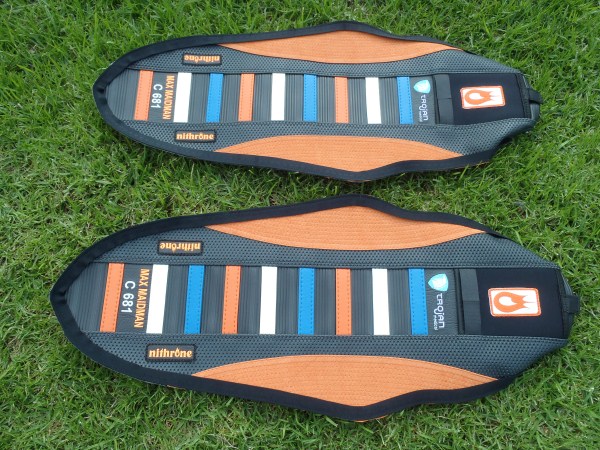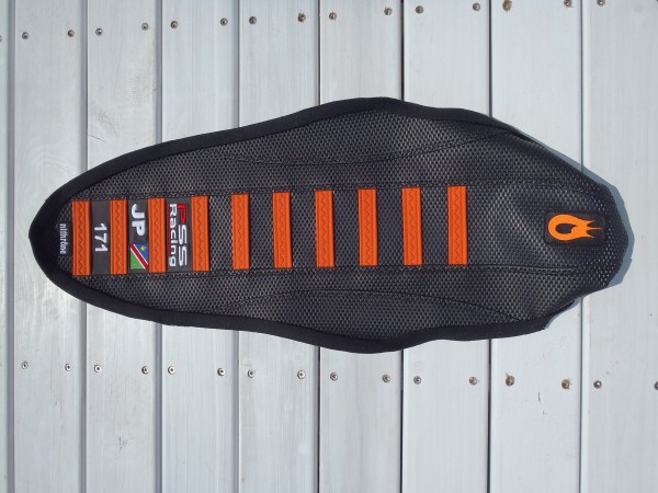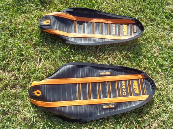All seat orders are made with the new imported gripper material that is shown in the newer pictures.