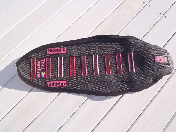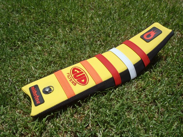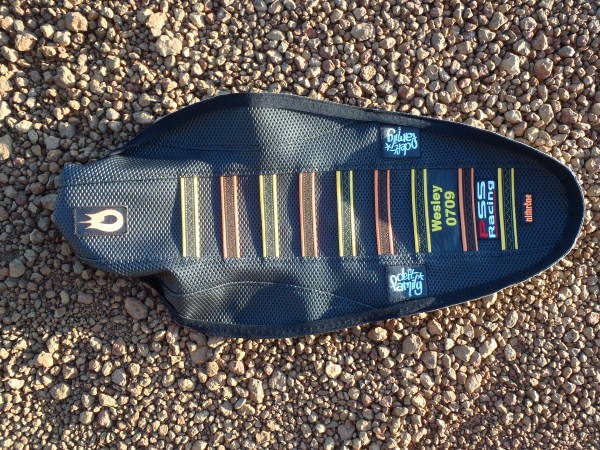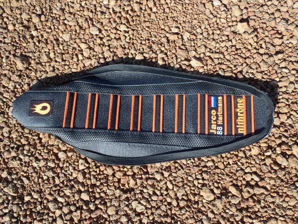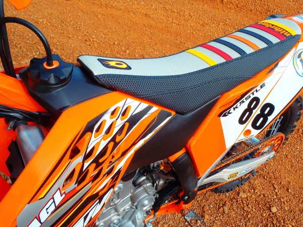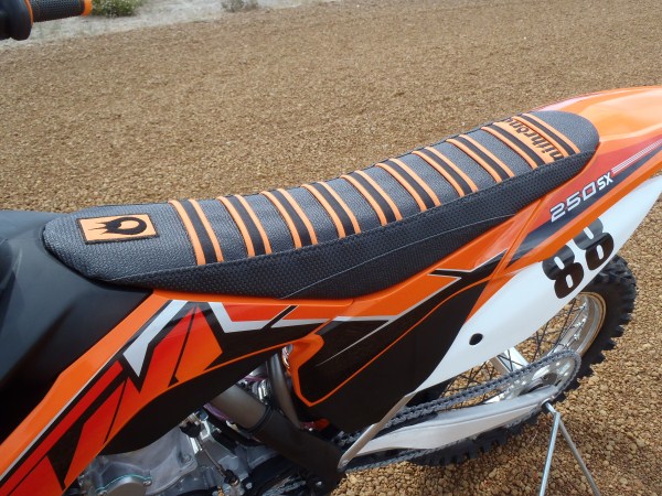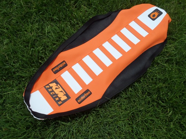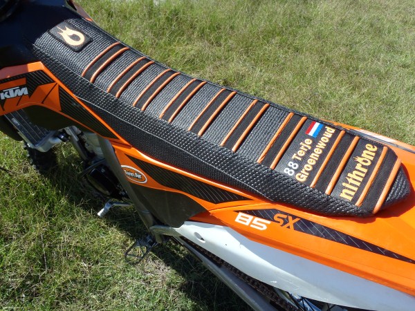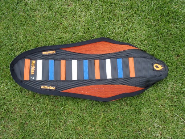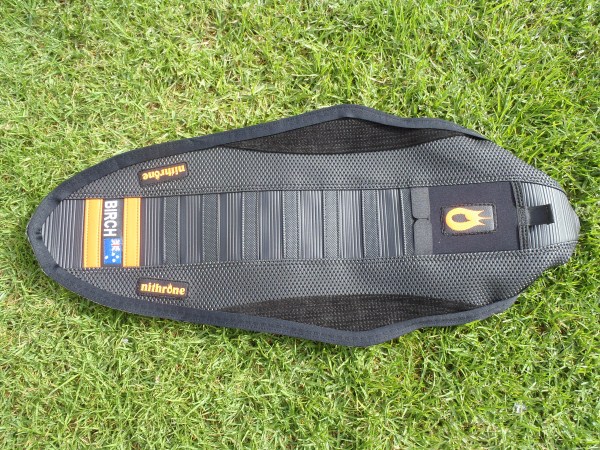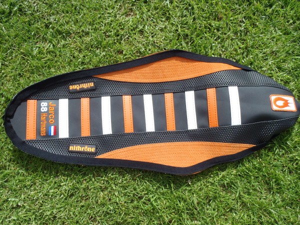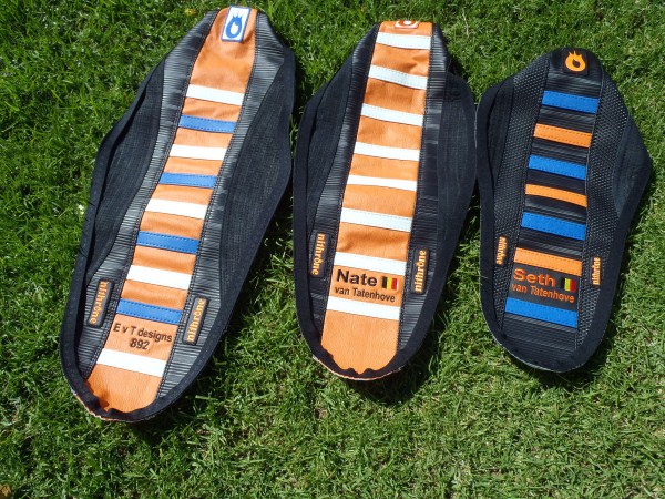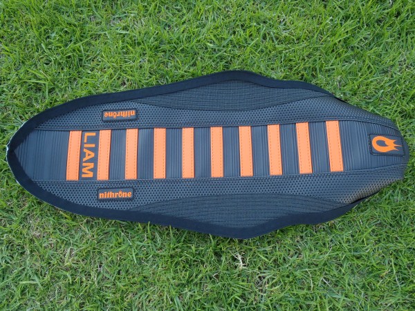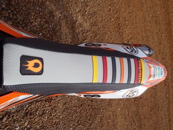 All seat orders are made with the new imported gripper material that is shown in the newer pictures.