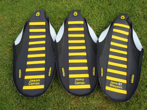 All seat orders are made with the new imported gripper material that is shown in the newer pictures.